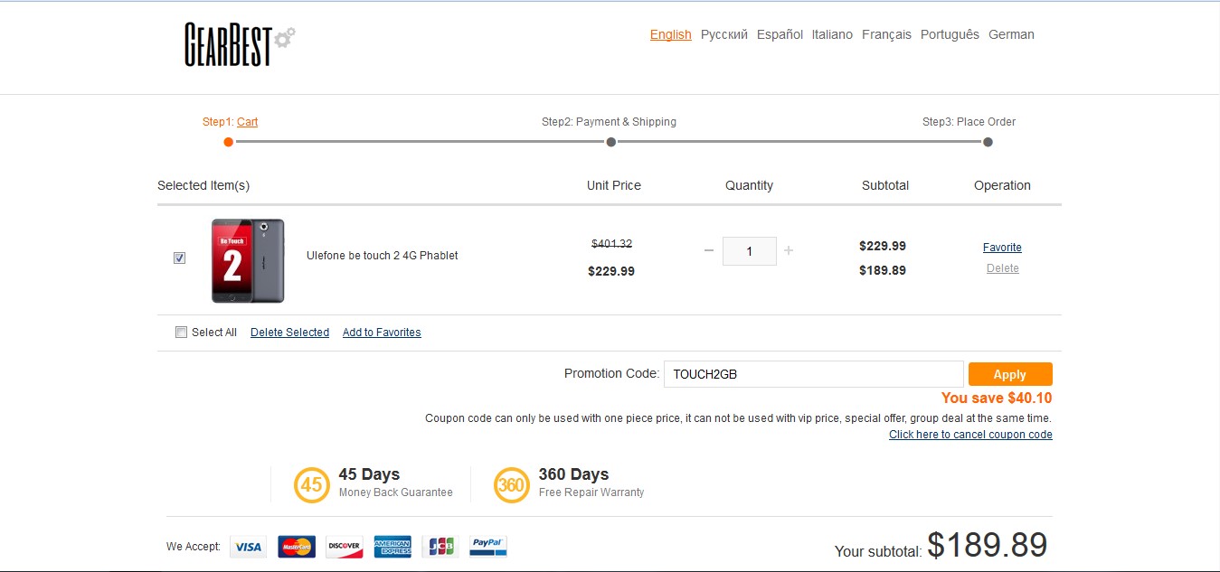 Pas de problème Gearbest a pensé à vous car grâce au code TOUCH2GB, vous pourrez vous offrir le tout pour 189.89$, soit une économie de 40$ sur le pack complet du Be Touch 2, ce deal est valable jusqu'au 31 août. pour commander c'est par ici :